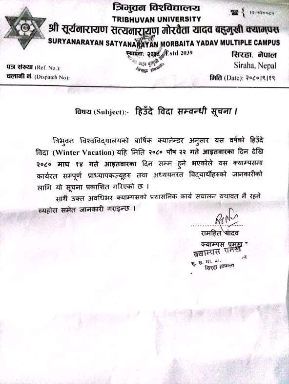 हिउदे बिदा सम्बन्धि सूचना